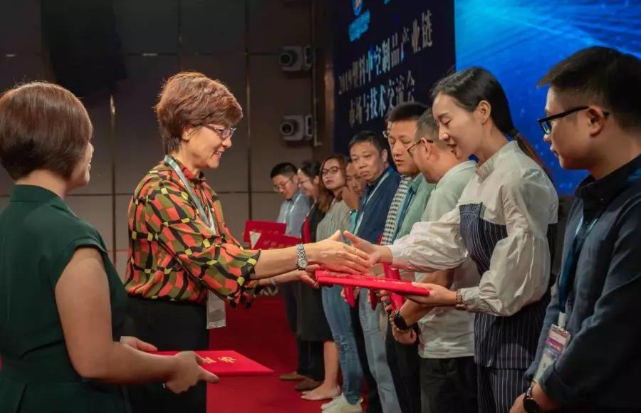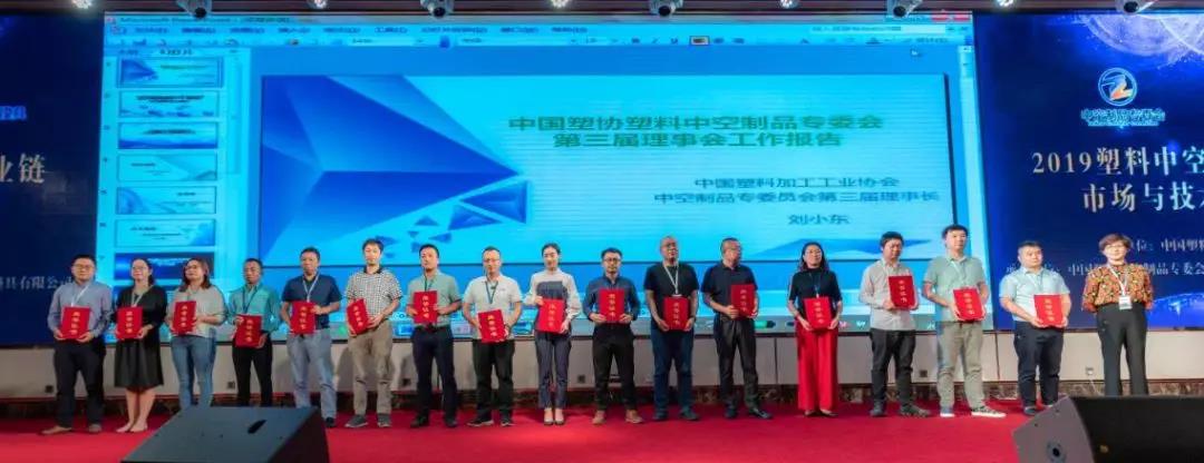 中國塑協領導為中空制品專委會第四屆理事會成員頒發銅牌。