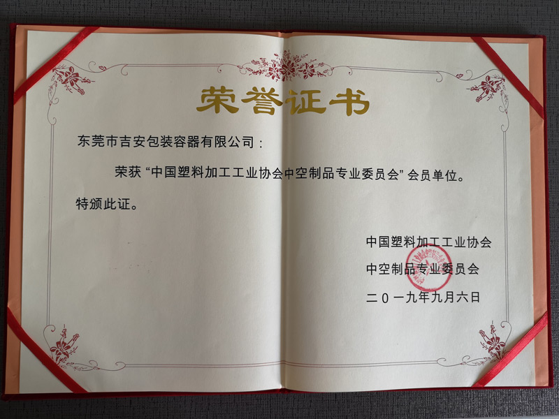 中國塑協和中空制品專委會第四屆理事會成員為新加入的會員頒發證書。