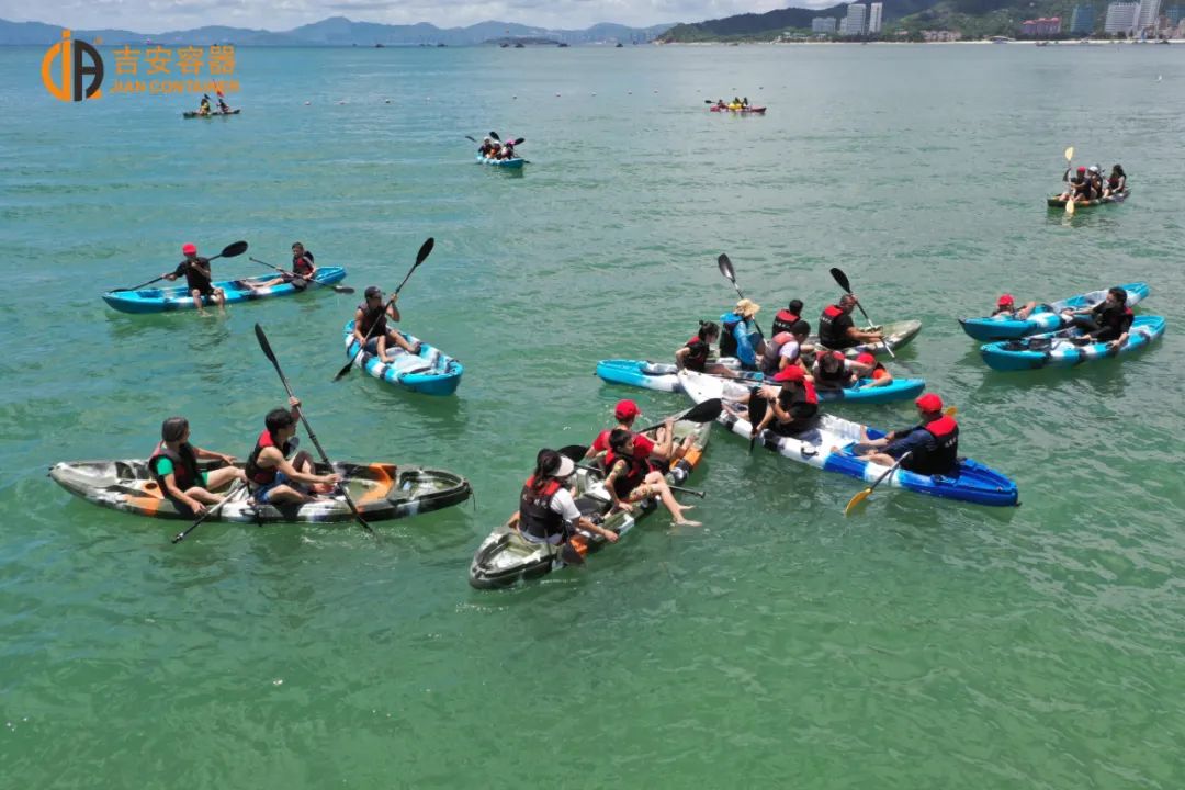 一個令人意猶未盡的項目,也是一個講究配合的項目,既具備緊張刺激,又帶有水上活動特有的娛樂性,當你和搭檔前后劃槳方向不同時,就會出現船在水中轉圈的情況。