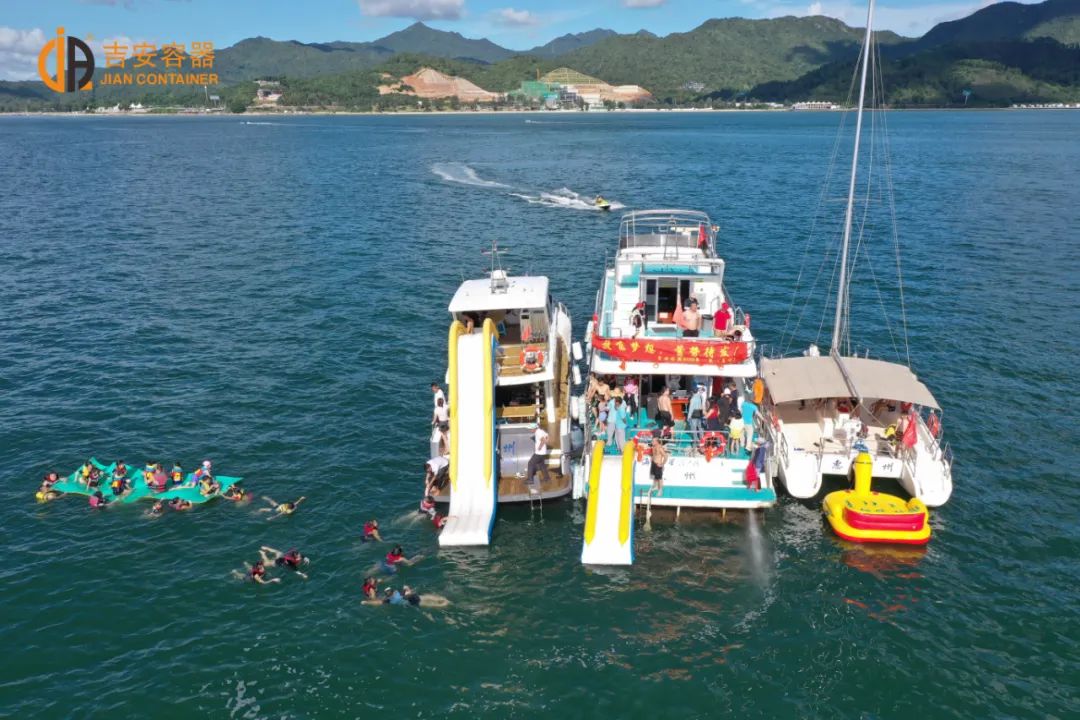 誰能拒絕在一個明媚的天氣乘坐價值千萬的游艇出海遨游呢?,一行人包了兩艘游艇一艘帆船前往海中央,開始我們的海上轟趴之旅。