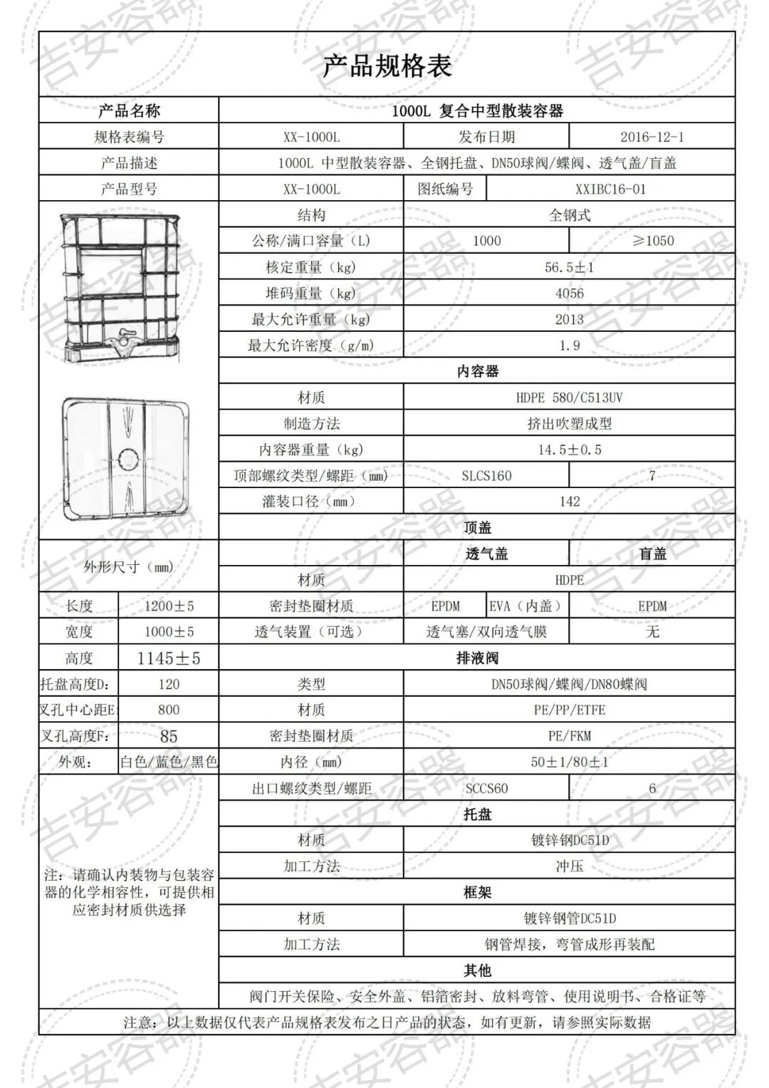 IBC噸桶,是現(xiàn)代倉(cāng)儲(chǔ)、運(yùn)輸液體產(chǎn)品的必備工具。集裝桶由內(nèi)容器和金屬框架組合而成,內(nèi)容器采用高分子量高密度聚乙烯吹塑成型,強(qiáng)度高、耐腐蝕、衛(wèi)生性好。
