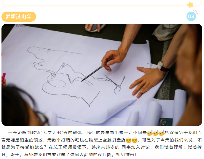 在大家合力完成這一項偉大項目的時候,更加體會到團隊合作的重要性,檢驗過山車正常運轉時,當籃球從起點緩慢運行至逐漸加速的過程中,我們激動與澎湃之情也隨著籃球的滾動而跳躍,每當“過山車”經過一道道精心設計的“關卡”,呈現出預期效果時,全體隊員都會不由自主的歡呼、鼓掌!我們內心深處感到無比自豪的成就感!