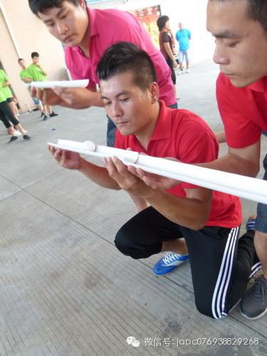 第三項比賽是最有挑戰(zhàn)性的項目——運球。規(guī)則是:1、每組人員5人為1小組,分成三小組,ABCD組同時進行,分三回合同時進行比賽。四組同時進行,每個組員手上有一條PV管。2、由第一個開始運,在5分鐘內成功的將球掉入指定的桶里面就算結束,根據(jù)四組最快為第一名,以此類推,要求球不要掉下來,也不可以倒退,如果掉下來或者是倒退的話就要重頭開始,把PV管反過來兩個人為一根管來運,規(guī)則與第一條一致。3、第一名5分,第二名加3分,第三名加2分,第四名加1分;如果5分鐘內沒有完成的小組,均不加分。