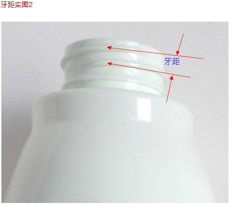 接下來(lái)我們還要來(lái)認(rèn)識(shí)一下很少用,但也十分重要的部份,就是牙距與牙型。 在這里先簡(jiǎn)單的說(shuō)解一下,第二篇“瓶口與瓶蓋的關(guān)系”我們會(huì)詳細(xì)解說(shuō)一旦牙型、牙距不正確了,那么就配不上蓋子或是配上了也會(huì)出現(xiàn)滑牙(脫牙)或是漏液等不良情況。我們這里先認(rèn)識(shí)下牙距與測(cè)量方法,如圖