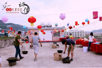 我們選擇在公司總部樓頂舉行燒烤聚會,符合中秋的氣氛我們需要布置場地,由于5樓長期空置,上面沒有照明工具,也沒有電,全部需要從樓下接上來,場地的設(shè)計方案由高曼雅負責(zé),搭建工作交由物管部和物流部2大部門主管落實跟進。