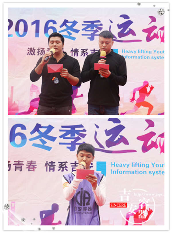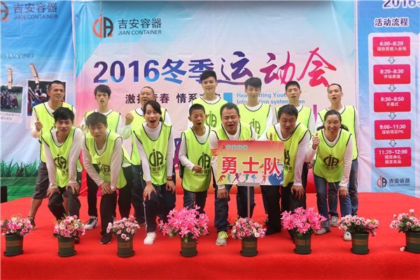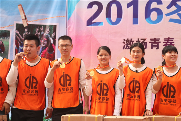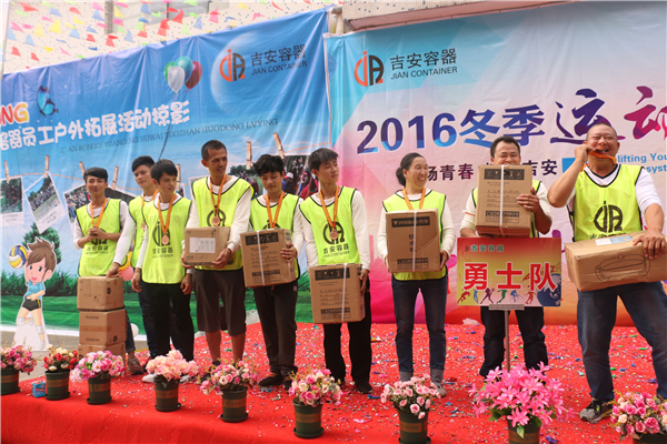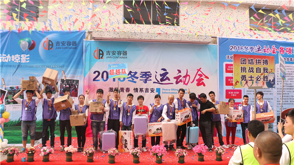 吉安容器2016年冬季運動會在快樂、勵志、緊張、激烈、溫馨、感動中圓滿落下帷幕,每個人都得到了不同的成長,有人說:我好久沒有這樣那么多人一起開心的玩了,有人說:剛才我疊罐子的時候把最后2個罐子放上去看到了萬眾期待的眼神,那一刻我的身上有了一種叫做責任的使命感,有人說:這是我來吉安容器參加的第一次團隊活動,我一開始是認為他應該是沉悶的,現(xiàn)在我發(fā)現(xiàn)它是“你開心就好”的一次活動,有人說:我今天得到了鍋具三件套,這幾年在公司參加的活動把家具都集齊了現(xiàn)在我就差個老婆了... ...我想,每個吉安人都有這樣的感覺吧,我們的每一次活動的目的,出發(fā)點都是快樂,每一個項目的設定,目的都是團結(jié)協(xié)作,共同進步,每次活動,我們從拼搏中感受團隊的力量,從失敗中感悟細節(jié)的重要,從成功的喜悅中明白原來只有真心付出,才能換來最后一刻的榮耀... ...我堅信,吉安容器在我們這支勇敢、團結(jié)、青春的隊伍的努力下,會走得更遠,發(fā)展的更快!