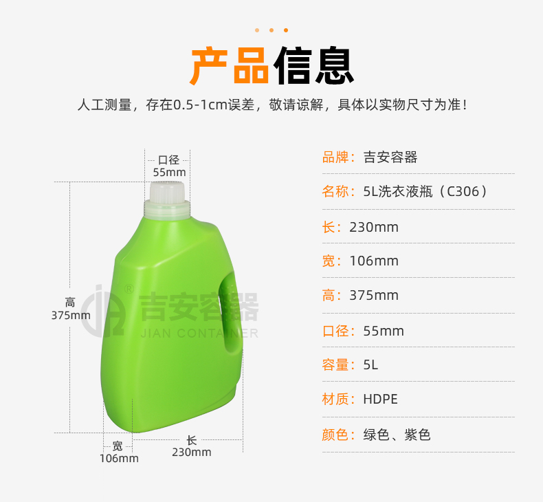 東莞市吉安包裝容器有限公司創立于2000年8月1日,是中國知名品牌企業。已通過ISO 9001質量管理體系資質認證,加入了中國中空協會,并獲得《中國知名品牌》,《國家標準合格產品》,《全國重合同守信用AAA級企業》,《質量.服務.誠信AAA企業》等榮譽稱號。根據材質的不同,我們的產品分為塑料容器、鐵質容器、鋁材容器、玻璃容器、紙質容器等五大類。按產品的名稱分為塑料桶、塑料瓶、包裝桶、涂料桶、機油桶、油脂桶、化工罐、膠水瓶、鐵桶、鐵罐、鋁瓶、鋁罐、阻隔瓶、高阻隔瓶等,容量從3ML至1000L多種規格,多種款式。適合包裝的產品包括:化學試劑、化工原料、化工助劑、飼料添加劑、油墨、油漆、樹脂農藥、日用化學品、聚氨脂、膠粘劑,廣泛應用于化工、建筑、食品、醫療、生物等各領域。