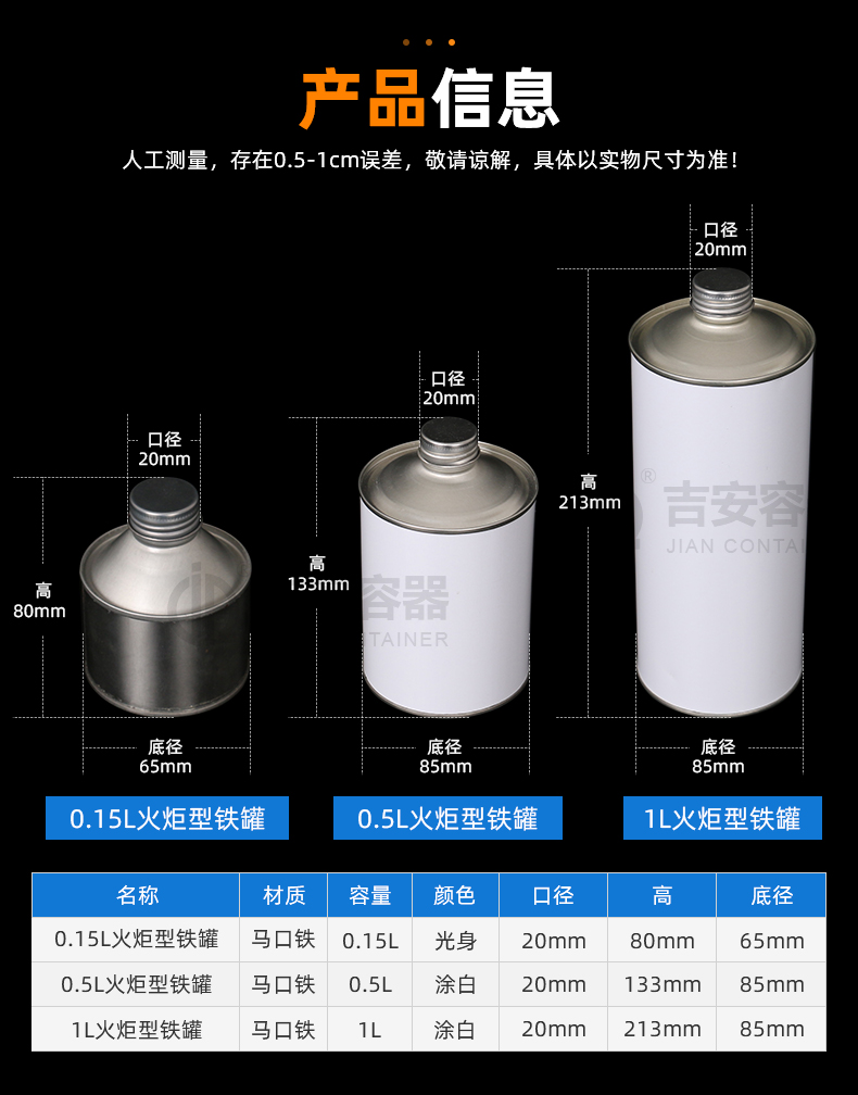 品名:500ml/1000ml火炬型鐵罐(T120) | |