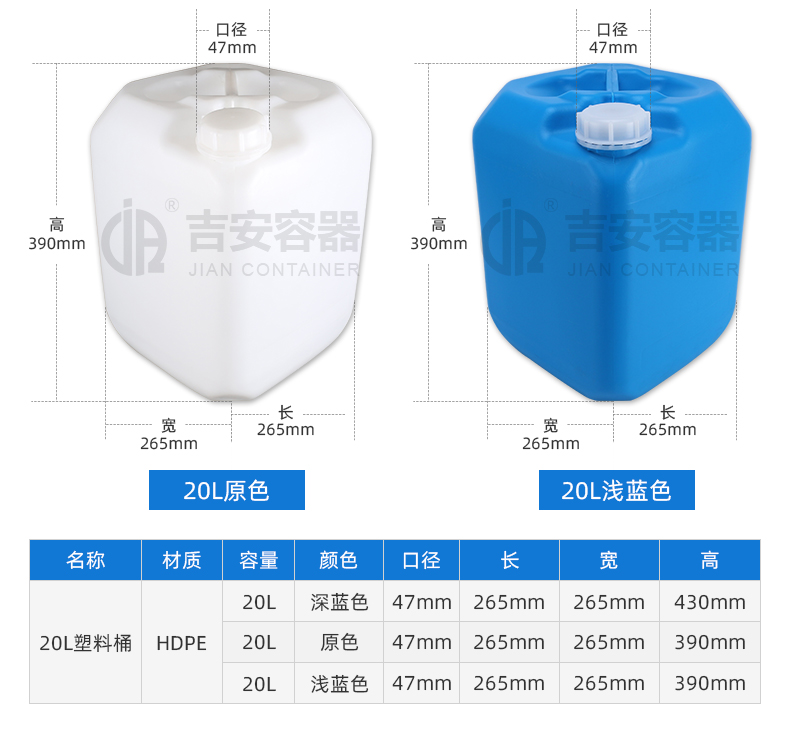 小口塑料桶:采用全新聚乙烯原料吹塑工藝制作而成,具有耐腐蝕,耐酸堿特性,小口設計密封性能強,廣泛應用于化工、清潔、食品、添加劑、汽車等各行業液體包裝。