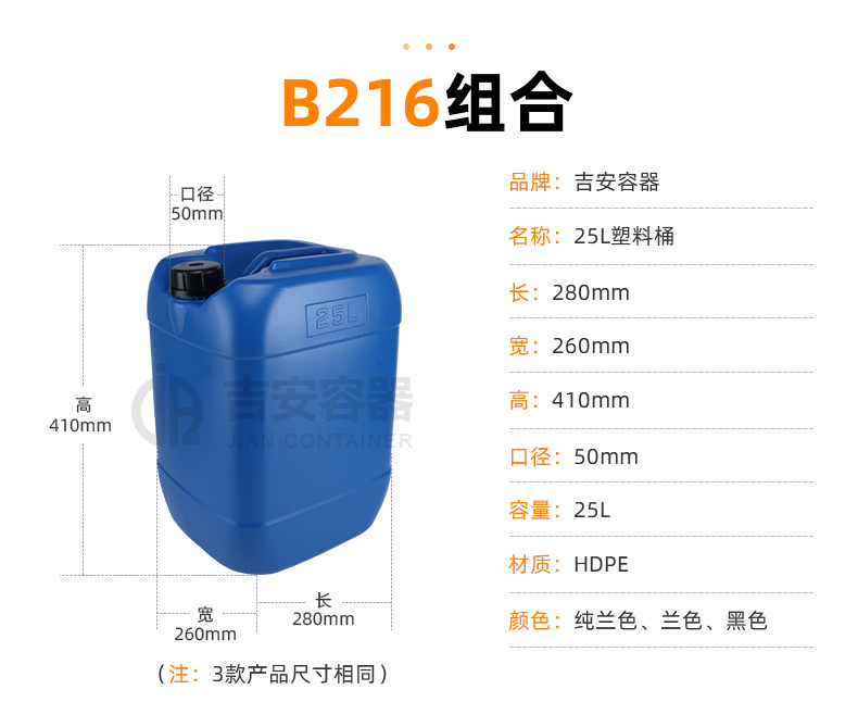• 產品名稱:25L方扁塑料桶新料(B216)