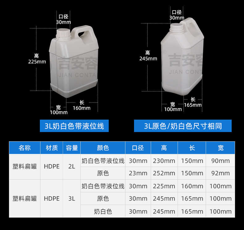 東莞市吉安包裝容器有限公司創立于2000年8月1日,是中國知名品牌企業。已通過ISO 9001質量管理體系資質認證,加入了中國中空協會,并獲得《中國知名品牌》,《國家標準合格產品》,《全國重合同守信用AAA級企業》,《質量.服務.誠信AAA企業》等榮譽稱號。根據材質的不同,我們的產品分為塑料容器、鐵質容器、鋁材容器、玻璃容器、紙質容器等五大類。按產品的名稱分為塑料桶、塑料瓶、包裝桶、涂料桶、機油桶、油脂桶、化工罐、膠水瓶、鐵桶、鐵罐、鋁瓶、鋁罐、阻隔瓶、高阻隔瓶等,容量從3ML至1000L多種規格,多種款式。適合包裝的產品包括:化學試劑、化工原料、化工助劑、飼料添加劑、油墨、油漆、樹脂農藥、日用化學品、聚氨脂、膠粘劑,廣泛應用于化工、建筑、食品、醫療、生物等各領域。