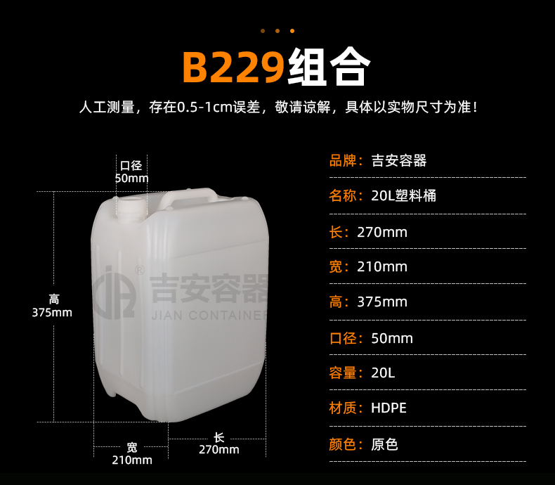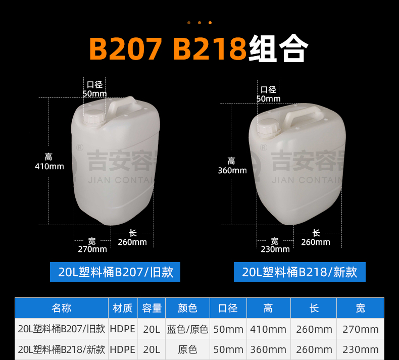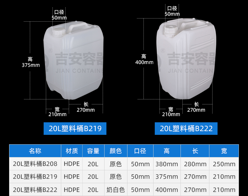 東莞市吉安包裝容器有限公司創立于2000年8月1日,是中國知名品牌企業。已通過ISO 9001質量管理體系資質認證,加入了中國中空協會,并獲得《中國知名品牌》,《國家標準合格產品》,《全國重合同守信用AAA級企業》,《質量.服務.誠信AAA企業》等榮譽稱號。根據材質的不同,我們的產品分為塑料容器、鐵質容器、鋁材容器、玻璃容器、紙質容器等五大類。按產品的名稱分為塑料桶、塑料瓶、包裝桶、涂料桶、機油桶、油脂桶、化工罐、膠水瓶、鐵桶、鐵罐、鋁瓶、鋁罐、阻隔瓶、高阻隔瓶等,容量從3ML至1000L多種規格,多種款式。適合包裝的產品包括:化學試劑、化工原料、化工助劑、飼料添加劑、油墨、油漆、樹脂農藥、日用化學品、聚氨脂、膠粘劑,廣泛應用于化工、建筑、食品、醫療、生物等各領域。