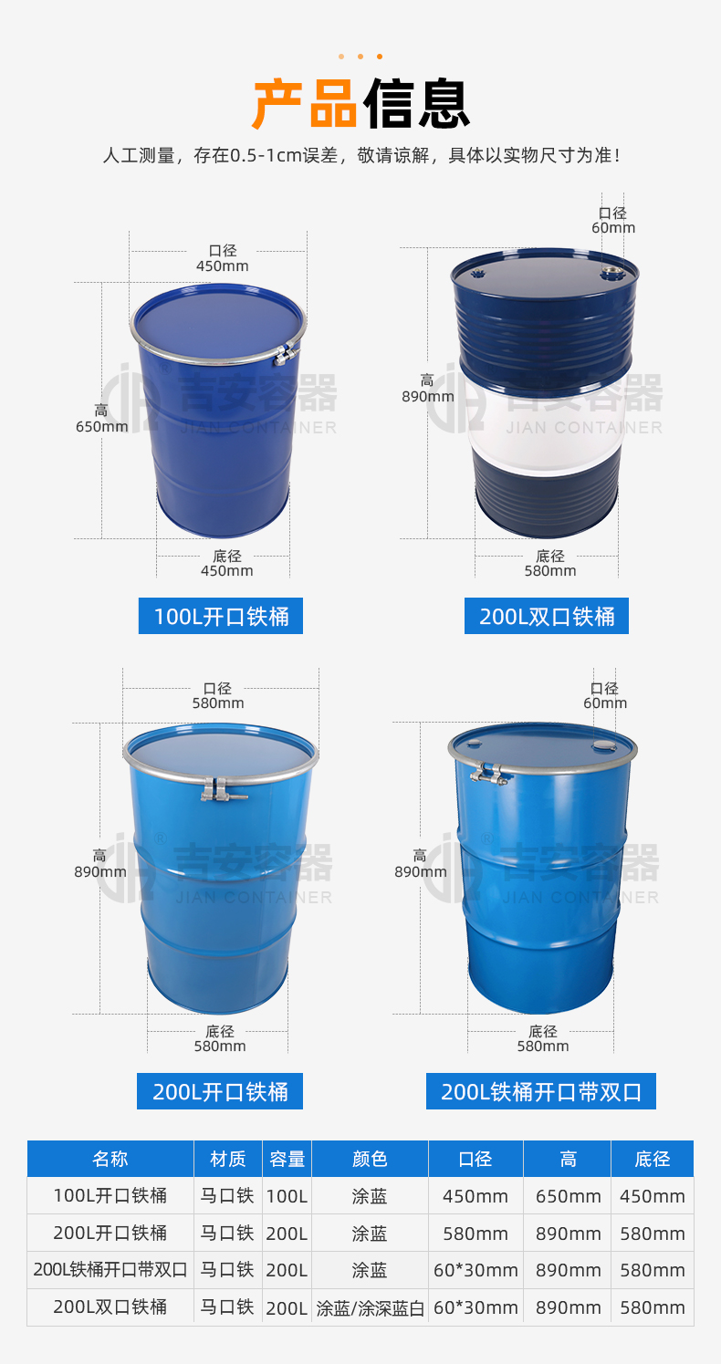 品名:200L油桶白藍(lán)鐵桶(T219) | |