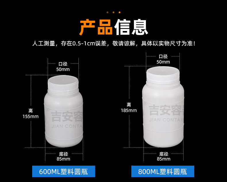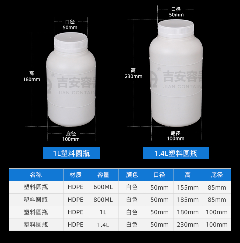 東莞市吉安包裝容器有限公司創立于2000年8月1日,是中國知名品牌企業。已通過ISO 9001質量管理體系資質認證,加入了中國中空協會,并獲得《中國知名品牌》,《國家標準合格產品》,《全國重合同守信用AAA級企業》,《質量.服務.誠信AAA企業》等榮譽稱號。根據材質的不同,我們的產品分為塑料容器、鐵質容器、鋁材容器、玻璃容器、紙質容器等五大類。按產品的名稱分為塑料桶、塑料瓶、包裝桶、涂料桶、機油桶、油脂桶、化工罐、膠水瓶、鐵桶、鐵罐、鋁瓶、鋁罐、阻隔瓶、高阻隔瓶等,容量從3ML至1000L多種規格,多種款式。適合包裝的產品包括:化學試劑、化工原料、化工助劑、飼料添加劑、油墨、油漆、樹脂農藥、日用化學品、聚氨脂、膠粘劑,廣泛應用于化工、建筑、食品、醫療、生物等各領域。