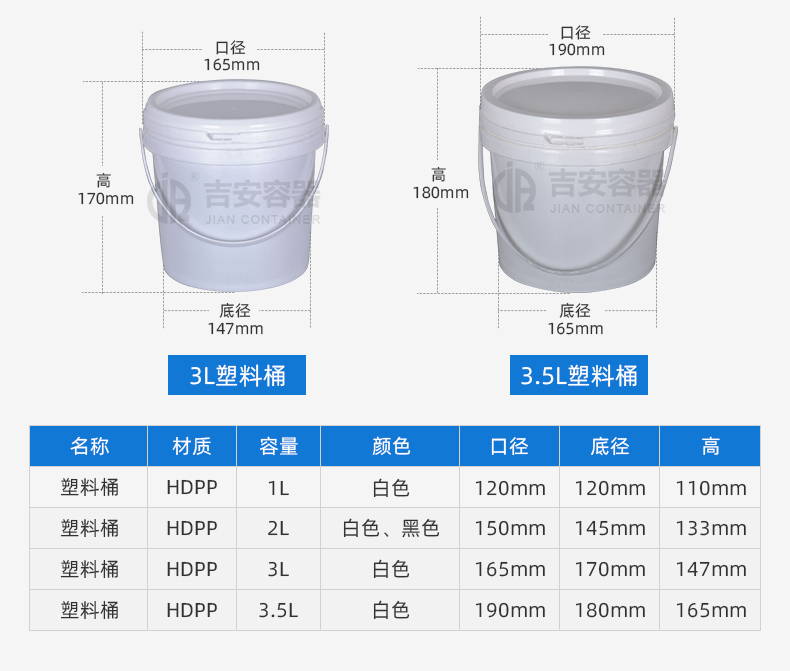 東莞市吉安包裝容器有限公司創立于2000年8月1日,是中國知名品牌企業。已通過ISO 9001質量管理體系資質認證,加入了中國中空協會,并獲得《中國知名品牌》,《國家標準合格產品》,《全國重合同守信用AAA級企業》,《質量.服務.誠信AAA企業》等榮譽稱號。根據材質的不同,我們的產品分為塑料容器、鐵質容器、鋁材容器、玻璃容器、紙質容器等五大類。按產品的名稱分為塑料桶、塑料瓶、包裝桶、涂料桶、機油桶、油脂桶、化工罐、膠水瓶、鐵桶、鐵罐、鋁瓶、鋁罐、阻隔瓶、高阻隔瓶等,容量從3ML至1000L多種規格,多種款式。適合包裝的產品包括:化學試劑、化工原料、化工助劑、飼料添加劑、油墨、油漆、樹脂農藥、日用化學品、聚氨脂、膠粘劑,廣泛應用于化工、建筑、食品、醫療、生物等各領域。