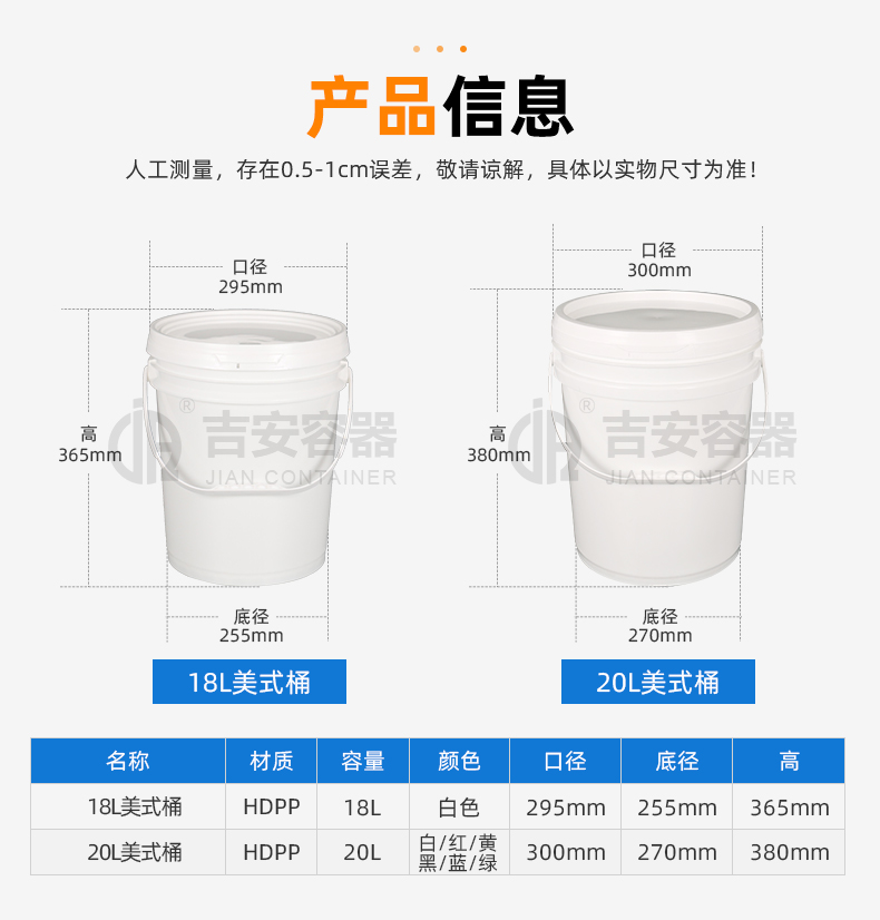 東莞市吉安包裝容器有限公司創立于2000年8月1日,是中國知名品牌企業。已通過ISO 9001質量管理體系資質認證,加入了中國中空協會,并獲得《中國知名品牌》,《國家標準合格產品》,《全國重合同守信用AAA級企業》,《質量.服務.誠信AAA企業》等榮譽稱號。根據材質的不同,我們的產品分為塑料容器、鐵質容器、鋁材容器、玻璃容器、紙質容器等五大類。按產品的名稱分為塑料桶、塑料瓶、包裝桶、涂料桶、機油桶、油脂桶、化工罐、膠水瓶、鐵桶、鐵罐、鋁瓶、鋁罐、阻隔瓶、高阻隔瓶等,容量從3ML至1000L多種規格,多種款式。適合包裝的產品包括:化學試劑、化工原料、化工助劑、飼料添加劑、油墨、油漆、樹脂農藥、日用化學品、聚氨脂、膠粘劑,廣泛應用于化工、建筑、食品、醫療、生物等各領域。