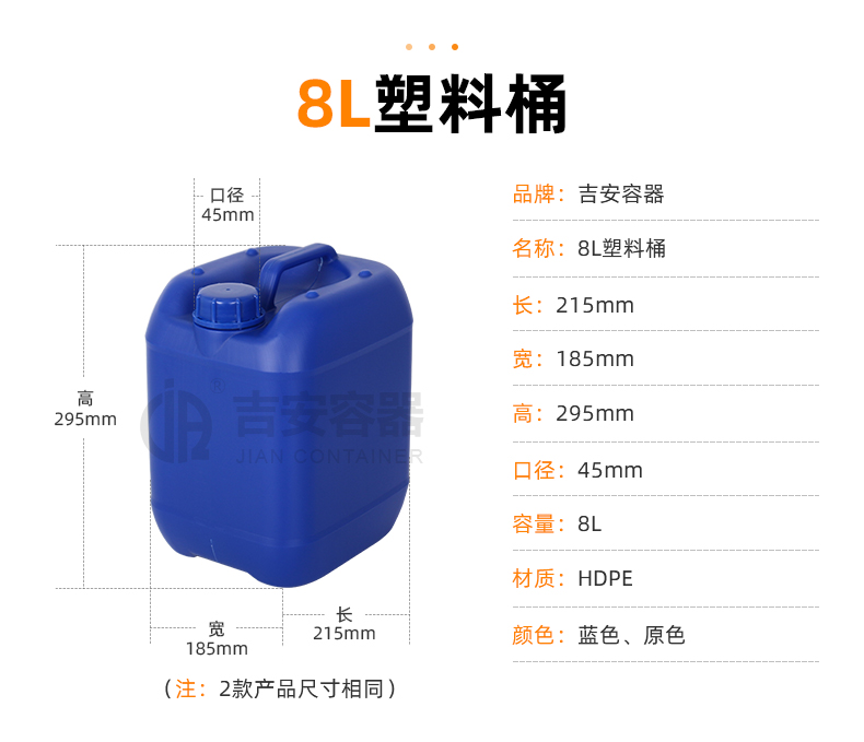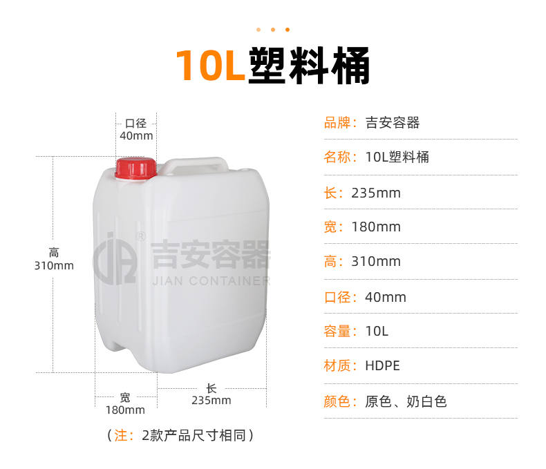 小口塑料桶:采用全新聚乙烯原料吹塑工藝制作而成,具有耐腐蝕,耐酸堿特性,小口設計密封性能強,廣泛應用于化工、清潔、食品、添加劑、汽車等各行業液體包裝。