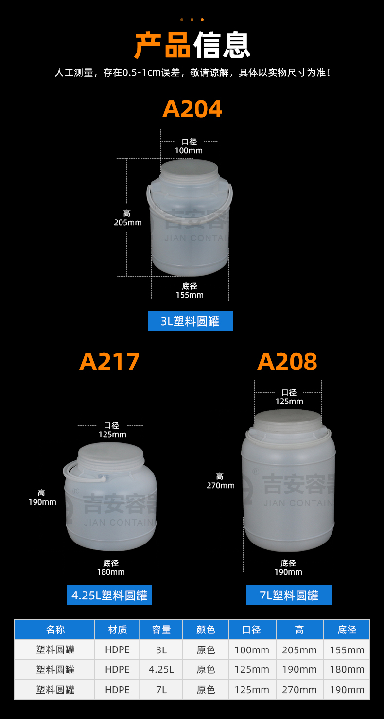 東莞市吉安包裝容器有限公司創立于2000年8月1日,是中國知名品牌企業。已通過ISO 9001質量管理體系資質認證,加入了中國中空協會,并獲得《中國知名品牌》,《國家標準合格產品》,《全國重合同守信用AAA級企業》,《質量.服務.誠信AAA企業》等榮譽稱號。根據材質的不同,我們的產品分為塑料容器、鐵質容器、鋁材容器、玻璃容器、紙質容器等五大類。按產品的名稱分為塑料桶、塑料瓶、包裝桶、涂料桶、機油桶、油脂桶、化工罐、膠水瓶、鐵桶、鐵罐、鋁瓶、鋁罐、阻隔瓶、高阻隔瓶等,容量從3ML至1000L多種規格,多種款式。適合包裝的產品包括:化學試劑、化工原料、化工助劑、飼料添加劑、油墨、油漆、樹脂農藥、日用化學品、聚氨脂、膠粘劑,廣泛應用于化工、建筑、食品、醫療、生物等各領域。