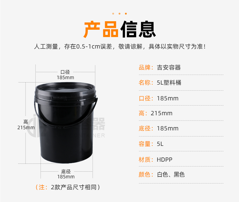 東莞市吉安包裝容器有限公司創立于2000年8月1日,是中國知名品牌企業。已通過ISO 9001質量管理體系資質認證,加入了中國中空協會,并獲得《中國知名品牌》,《國家標準合格產品》,《全國重合同守信用AAA級企業》,《質量.服務.誠信AAA企業》等榮譽稱號。根據材質的不同,我們的產品分為塑料容器、鐵質容器、鋁材容器、玻璃容器、紙質容器等五大類。按產品的名稱分為塑料桶、塑料瓶、包裝桶、涂料桶、機油桶、油脂桶、化工罐、膠水瓶、鐵桶、鐵罐、鋁瓶、鋁罐、阻隔瓶、高阻隔瓶等,容量從3ML至1000L多種規格,多種款式。適合包裝的產品包括:化學試劑、化工原料、化工助劑、飼料添加劑、油墨、油漆、樹脂農藥、日用化學品、聚氨脂、膠粘劑,廣泛應用于化工、建筑、食品、醫療、生物等各領域。