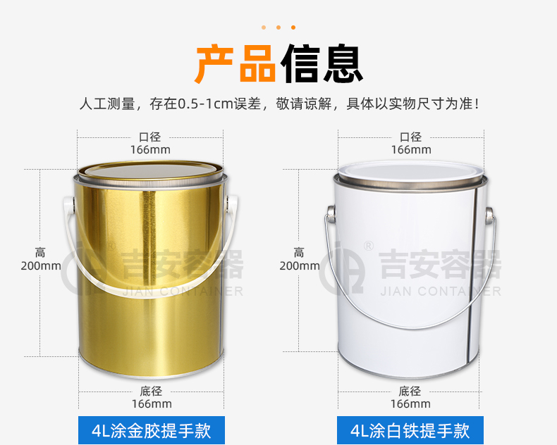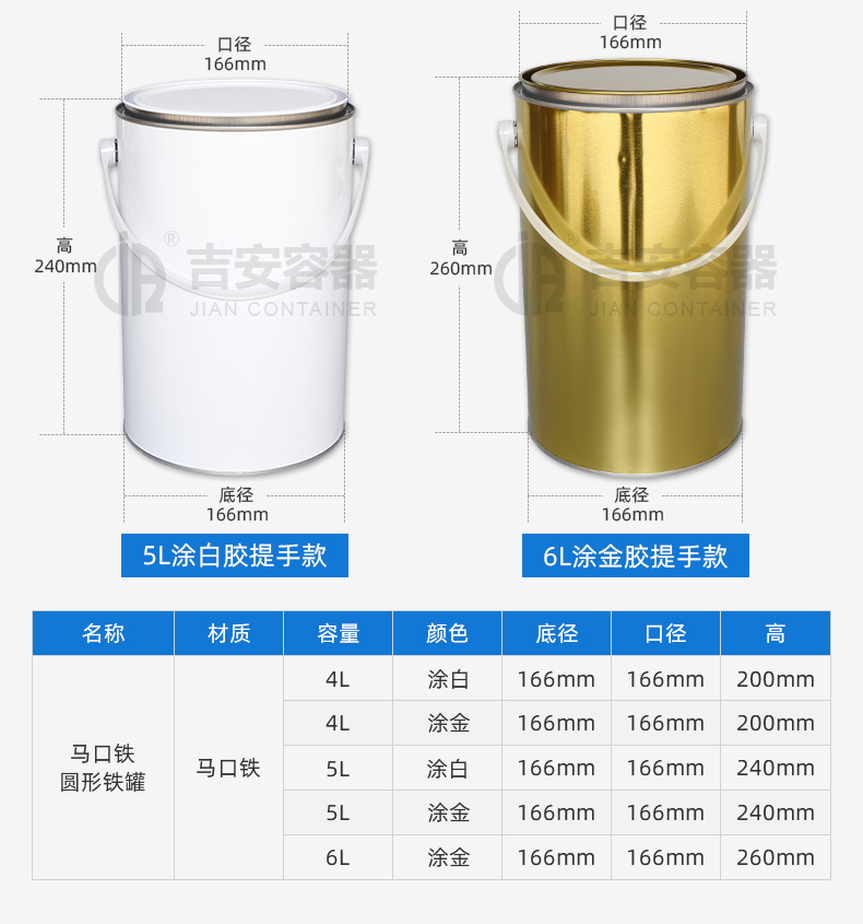 東莞市吉安包裝容器有限公司創立于2000年8月1日,是中國知名品牌企業。已通過ISO 9001質量管理體系資質認證,加入了中國中空協會,并獲得《中國知名品牌》,《國家標準合格產品》,《全國重合同守信用AAA級企業》,《質量.服務.誠信AAA企業》等榮譽稱號。根據材質的不同,我們的產品分為塑料容器、鐵質容器、鋁材容器、玻璃容器、紙質容器等五大類。按產品的名稱分為塑料桶、塑料瓶、包裝桶、涂料桶、機油桶、油脂桶、化工罐、膠水瓶、鐵桶、鐵罐、鋁瓶、鋁罐、阻隔瓶、高阻隔瓶等,容量從3ML至1000L多種規格,多種款式。適合包裝的產品包括:化學試劑、化工原料、化工助劑、飼料添加劑、油墨、油漆、樹脂農藥、日用化學品、聚氨脂、膠粘劑,廣泛應用于化工、建筑、食品、醫療、生物等各領域。