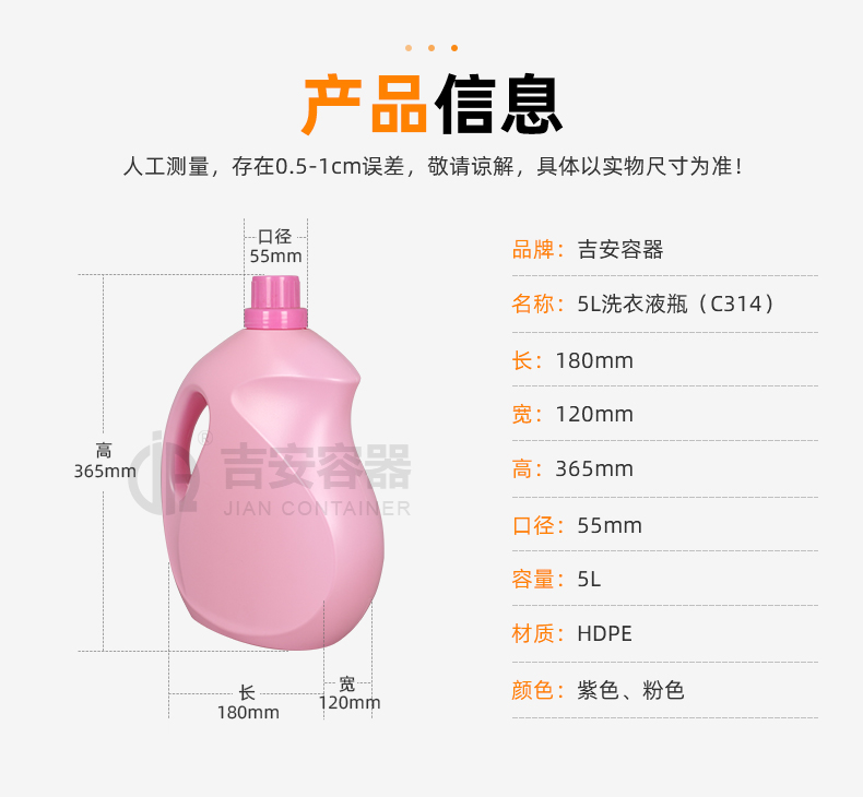 東莞市吉安包裝容器有限公司創立于2000年8月1日,是中國知名品牌企業。已通過ISO 9001質量管理體系資質認證,加入了中國中空協會,并獲得《中國知名品牌》,《國家標準合格產品》,《全國重合同守信用AAA級企業》,《質量.服務.誠信AAA企業》等榮譽稱號。根據材質的不同,我們的產品分為塑料容器、鐵質容器、鋁材容器、玻璃容器、紙質容器等五大類。按產品的名稱分為塑料桶、塑料瓶、包裝桶、涂料桶、機油桶、油脂桶、化工罐、膠水瓶、鐵桶、鐵罐、鋁瓶、鋁罐、阻隔瓶、高阻隔瓶等,容量從3ML至1000L多種規格,多種款式。適合包裝的產品包括:化學試劑、化工原料、化工助劑、飼料添加劑、油墨、油漆、樹脂農藥、日用化學品、聚氨脂、膠粘劑,廣泛應用于化工、建筑、食品、醫療、生物等各領域。