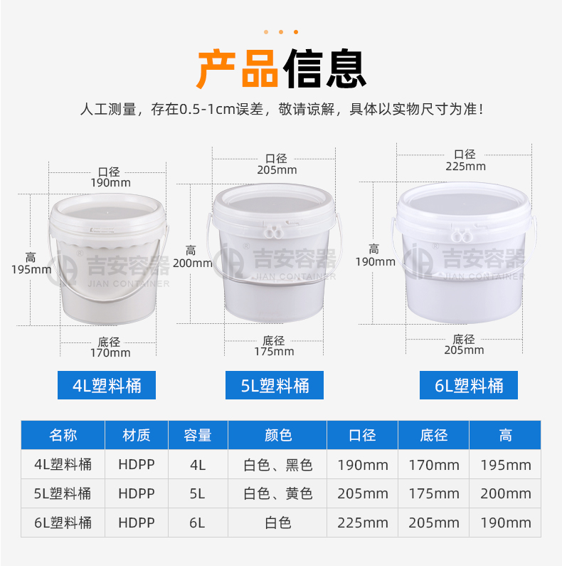 東莞市吉安包裝容器有限公司創立于2000年8月1日,是中國知名品牌企業。已通過ISO 9001質量管理體系資質認證,加入了中國中空協會,并獲得《中國知名品牌》,《國家標準合格產品》,《全國重合同守信用AAA級企業》,《質量.服務.誠信AAA企業》等榮譽稱號。根據材質的不同,我們的產品分為塑料容器、鐵質容器、鋁材容器、玻璃容器、紙質容器等五大類。按產品的名稱分為塑料桶、塑料瓶、包裝桶、涂料桶、機油桶、油脂桶、化工罐、膠水瓶、鐵桶、鐵罐、鋁瓶、鋁罐、阻隔瓶、高阻隔瓶等,容量從3ML至1000L多種規格,多種款式。適合包裝的產品包括:化學試劑、化工原料、化工助劑、飼料添加劑、油墨、油漆、樹脂農藥、日用化學品、聚氨脂、膠粘劑,廣泛應用于化工、建筑、食品、醫療、生物等各領域。