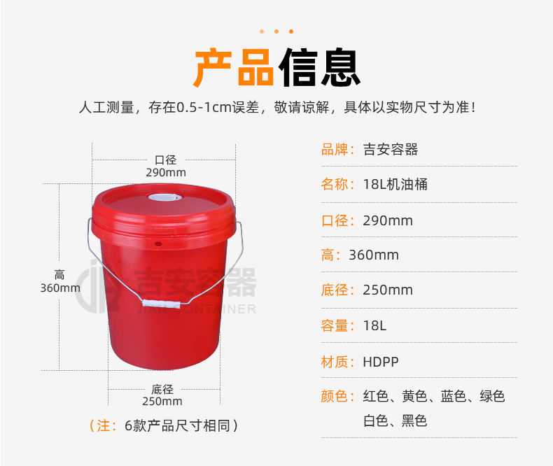東莞市吉安包裝容器有限公司創立于2000年8月1日,是中國知名品牌企業。已通過ISO 9001質量管理體系資質認證,加入了中國中空協會,并獲得《中國知名品牌》,《國家標準合格產品》,《全國重合同守信用AAA級企業》,《質量.服務.誠信AAA企業》等榮譽稱號。根據材質的不同,我們的產品分為塑料容器、鐵質容器、鋁材容器、玻璃容器、紙質容器等五大類。按產品的名稱分為塑料桶、塑料瓶、包裝桶、涂料桶、機油桶、油脂桶、化工罐、膠水瓶、鐵桶、鐵罐、鋁瓶、鋁罐、阻隔瓶、高阻隔瓶等,容量從3ML至1000L多種規格,多種款式。適合包裝的產品包括:化學試劑、化工原料、化工助劑、飼料添加劑、油墨、油漆、樹脂農藥、日用化學品、聚氨脂、膠粘劑,廣泛應用于化工、建筑、食品、醫療、生物等各領域。