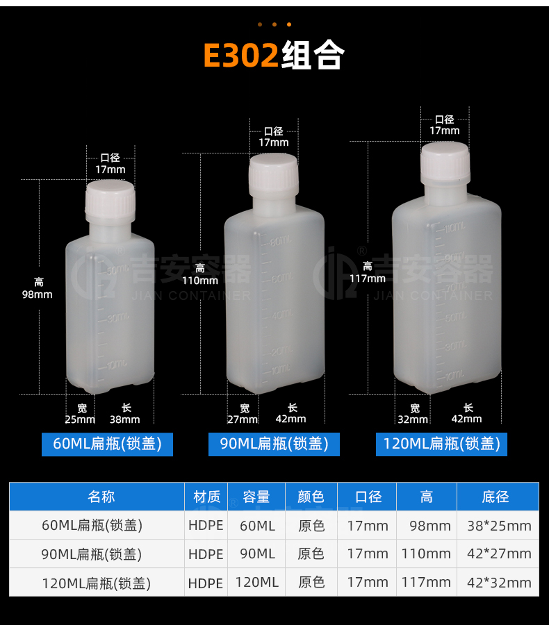 品名:60ml~120ml塑料瓶(E302) | |
