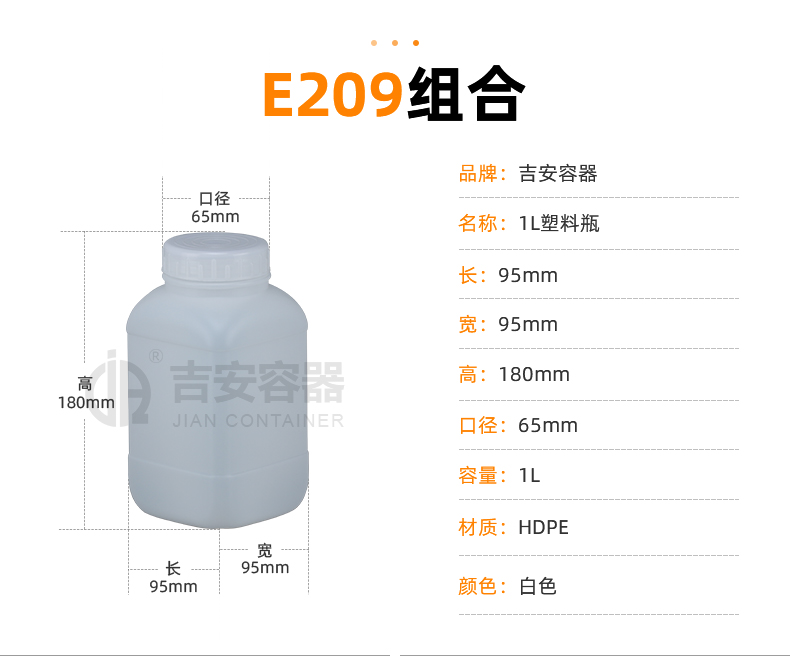 東莞市吉安包裝容器有限公司創立于2000年8月1日,是中國知名品牌企業。已通過ISO 9001質量管理體系資質認證,加入了中國中空協會,并獲得《中國知名品牌》,《國家標準合格產品》,《全國重合同守信用AAA級企業》,《質量.服務.誠信AAA企業》等榮譽稱號。根據材質的不同,我們的產品分為塑料容器、鐵質容器、鋁材容器、玻璃容器、紙質容器等五大類。按產品的名稱分為塑料桶、塑料瓶、包裝桶、涂料桶、機油桶、油脂桶、化工罐、膠水瓶、鐵桶、鐵罐、鋁瓶、鋁罐、阻隔瓶、高阻隔瓶等,容量從3ML至1000L多種規格,多種款式。適合包裝的產品包括:化學試劑、化工原料、化工助劑、飼料添加劑、油墨、油漆、樹脂農藥、日用化學品、聚氨脂、膠粘劑,廣泛應用于化工、建筑、食品、醫療、生物等各領域。