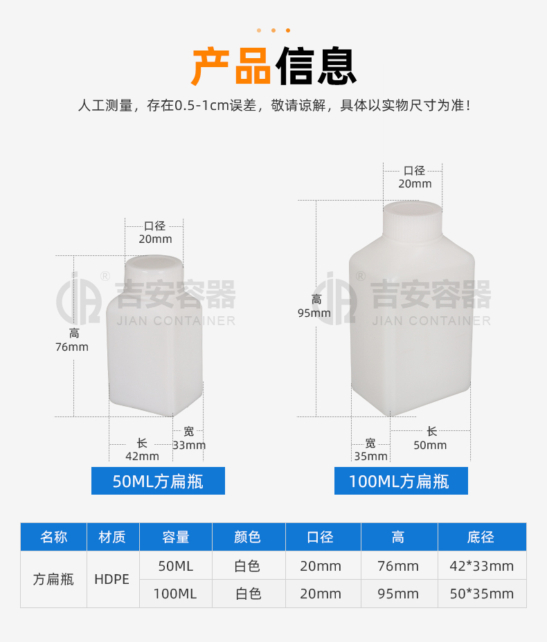 品名:50ml/100ml扁塑料瓶(E203) | |