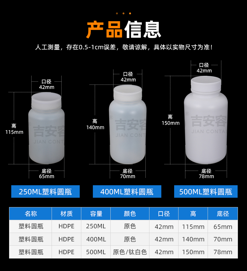 品名:500ml中口圓塑料瓶(E124) | |