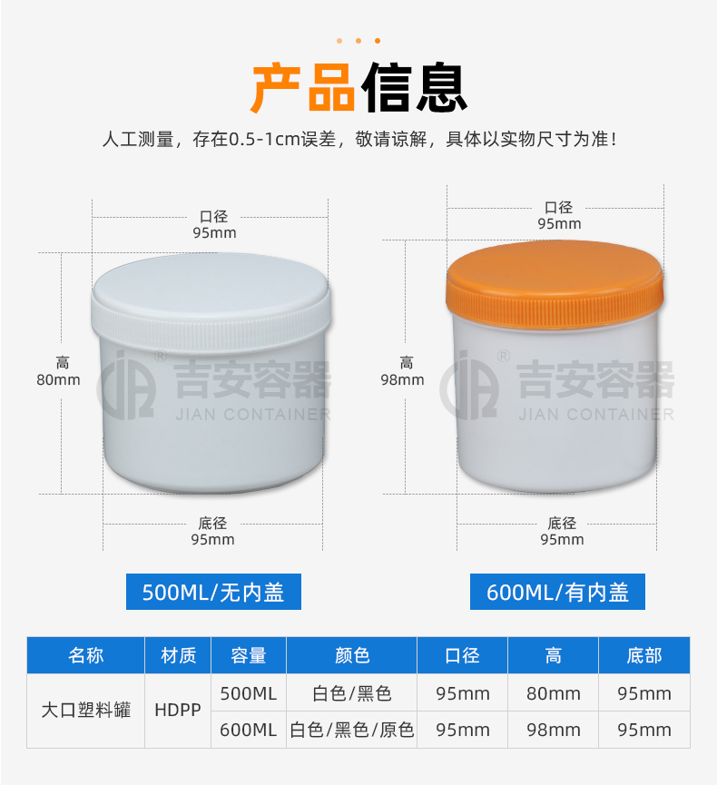 東莞市吉安包裝容器有限公司創立于2000年8月1日,是中國知名品牌企業。已通過ISO 9001質量管理體系資質認證,加入了中國中空協會,并獲得《中國知名品牌》,《國家標準合格產品》,《全國重合同守信用AAA級企業》,《質量.服務.誠信AAA企業》等榮譽稱號。根據材質的不同,我們的產品分為塑料容器、鐵質容器、鋁材容器、玻璃容器、紙質容器等五大類。按產品的名稱分為塑料桶、塑料瓶、包裝桶、涂料桶、機油桶、油脂桶、化工罐、膠水瓶、鐵桶、鐵罐、鋁瓶、鋁罐、阻隔瓶、高阻隔瓶等,容量從3ML至1000L多種規格,多種款式。適合包裝的產品包括:化學試劑、化工原料、化工助劑、飼料添加劑、油墨、油漆、樹脂農藥、日用化學品、聚氨脂、膠粘劑,廣泛應用于化工、建筑、食品、醫療、生物等各領域。