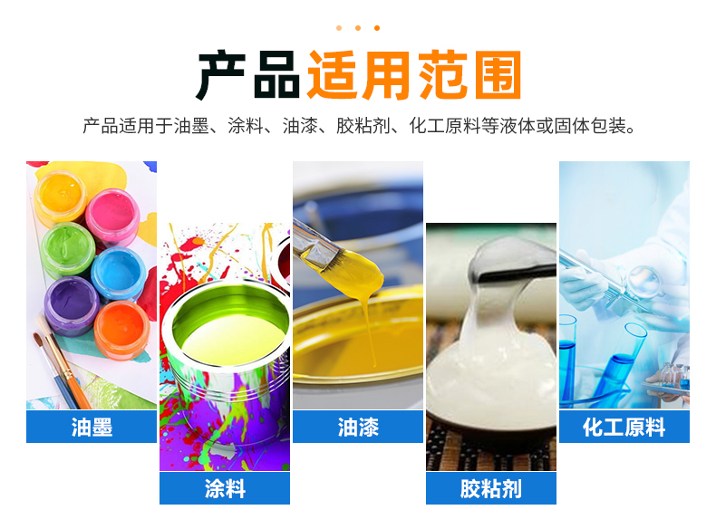 東莞市吉安包裝容器有限公司創(chuàng)立于2000年8月1日,是中國(guó)知名品牌企業(yè)。已通過(guò)ISO 9001質(zhì)量管理體系資質(zhì)認(rèn)證,加入了中國(guó)中空協(xié)會(huì),并獲得《中國(guó)知名品牌》,《國(guó)家標(biāo)準(zhǔn)合格產(chǎn)品》,《全國(guó)重合同守信用AAA級(jí)企業(yè)》,《質(zhì)量.服務(wù).誠(chéng)信AAA企業(yè)》等榮譽(yù)稱(chēng)號(hào)。根據(jù)材質(zhì)的不同,我們的產(chǎn)品分為塑料容器、鐵質(zhì)容器、鋁材容器、玻璃容器、紙質(zhì)容器等五大類(lèi)。按產(chǎn)品的名稱(chēng)分為塑料桶、塑料瓶、包裝桶、涂料桶、機(jī)油桶、油脂桶、化工罐、膠水瓶、鐵桶、鐵罐、鋁瓶、鋁罐、阻隔瓶、高阻隔瓶等,容量從3ML至1000L多種規(guī)格,多種款式。適合包裝的產(chǎn)品包括:化學(xué)試劑、化工原料、化工助劑、飼料添加劑、油墨、油漆、樹(shù)脂農(nóng)藥、日用化學(xué)品、聚氨脂、膠粘劑,廣泛應(yīng)用于化工、建筑、食品、醫(yī)療、生物等各領(lǐng)域。