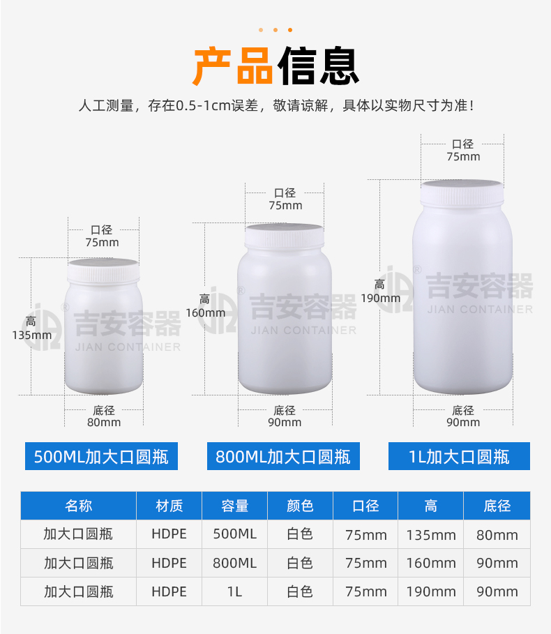 品名:500ml~1L加大口塑料瓶(E187) | |