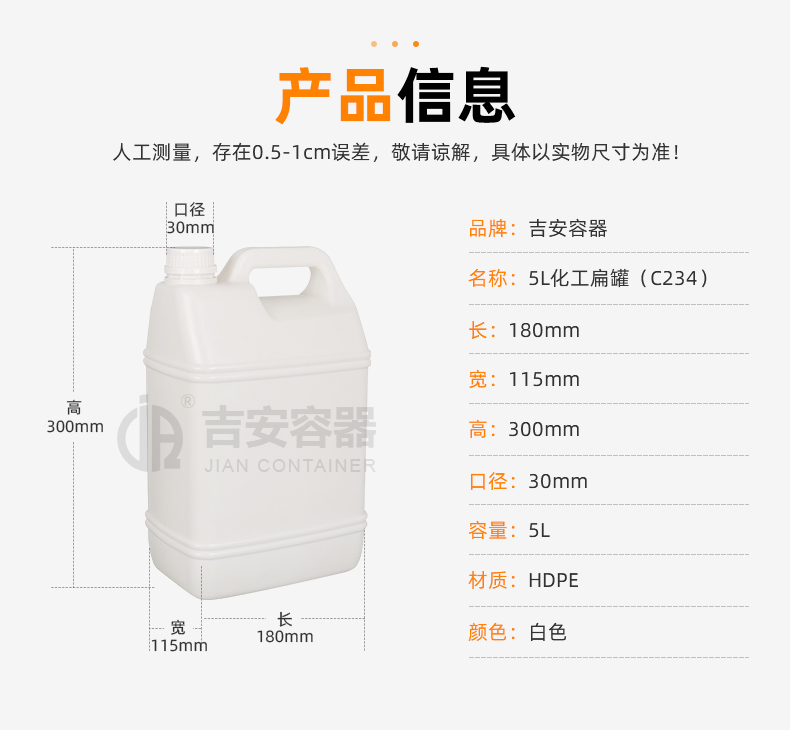 東莞市吉安包裝容器有限公司創(chuàng)立于2000年8月1日,是中國知名品牌企業(yè)。已通過ISO 9001質(zhì)量管理體系資質(zhì)認證,加入了中國中空協(xié)會,并獲得《中國知名品牌》,《國家標準合格產(chǎn)品》,《全國重合同守信用AAA級企業(yè)》,《質(zhì)量.服務.誠信AAA企業(yè)》等榮譽稱號。根據(jù)材質(zhì)的不同,我們的產(chǎn)品分為塑料容器、鐵質(zhì)容器、鋁材容器、玻璃容器、紙質(zhì)容器等五大類。按產(chǎn)品的名稱分為塑料桶、塑料瓶、包裝桶、涂料桶、機油桶、油脂桶、化工罐、膠水瓶、鐵桶、鐵罐、鋁瓶、鋁罐、阻隔瓶、高阻隔瓶等,容量從3ML至1000L多種規(guī)格,多種款式。適合包裝的產(chǎn)品包括:化學試劑、化工原料、化工助劑、飼料添加劑、油墨、油漆、樹脂農(nóng)藥、日用化學品、聚氨脂、膠粘劑,廣泛應用于化工、建筑、食品、醫(yī)療、生物等各領域。