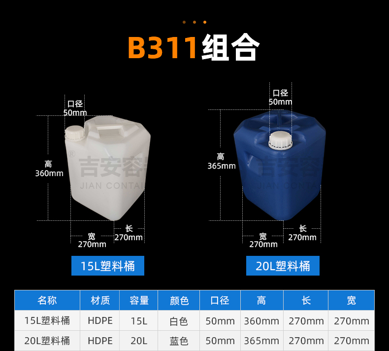 小口塑料桶:采用全新聚乙烯原料吹塑工藝制作而成,具有耐腐蝕,耐酸堿特性,小口設計密封性能強,廣泛應用于化工、清潔、食品、添加劑、汽車等各行業液體包裝。