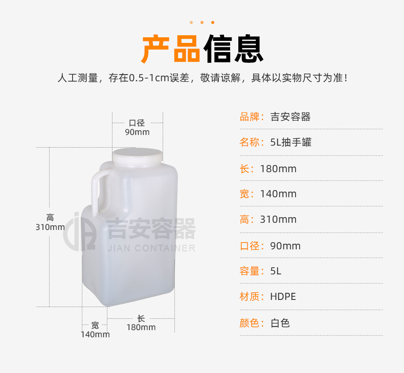 容量:5L | 材質(zhì):罐蓋-PP,罐身-HDPE |