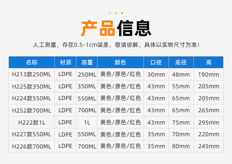 材質:瓶身-LDPE,瓶蓋-HDPP | |