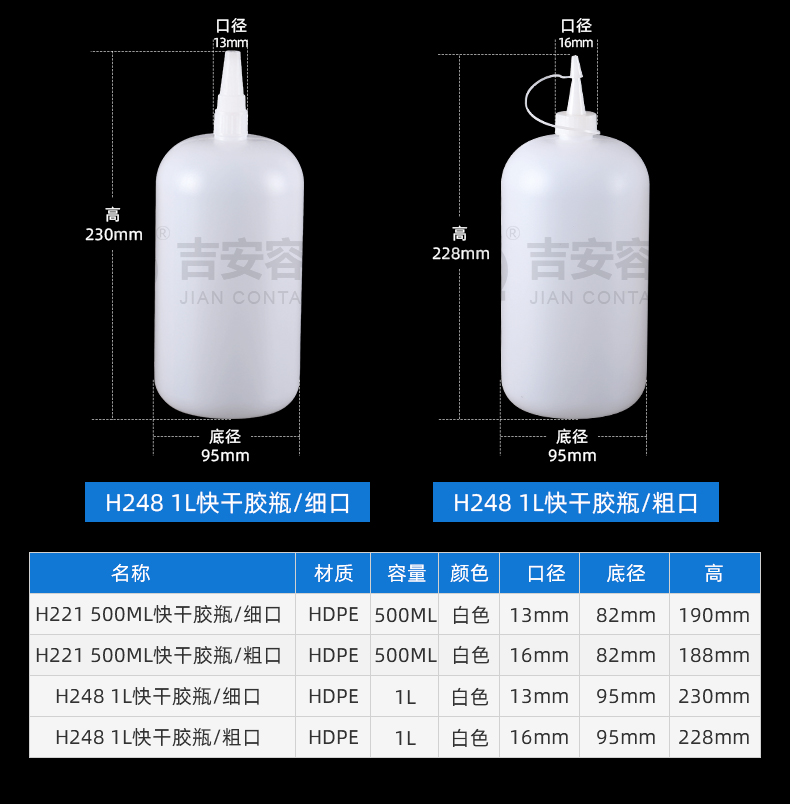 尖嘴瓶適用行業廣泛,多用于膠水包裝、眼藥水包裝、食品調料包裝,因其尖嘴特點,具備方便滴膠,操作時流量可控可調,使用方便。