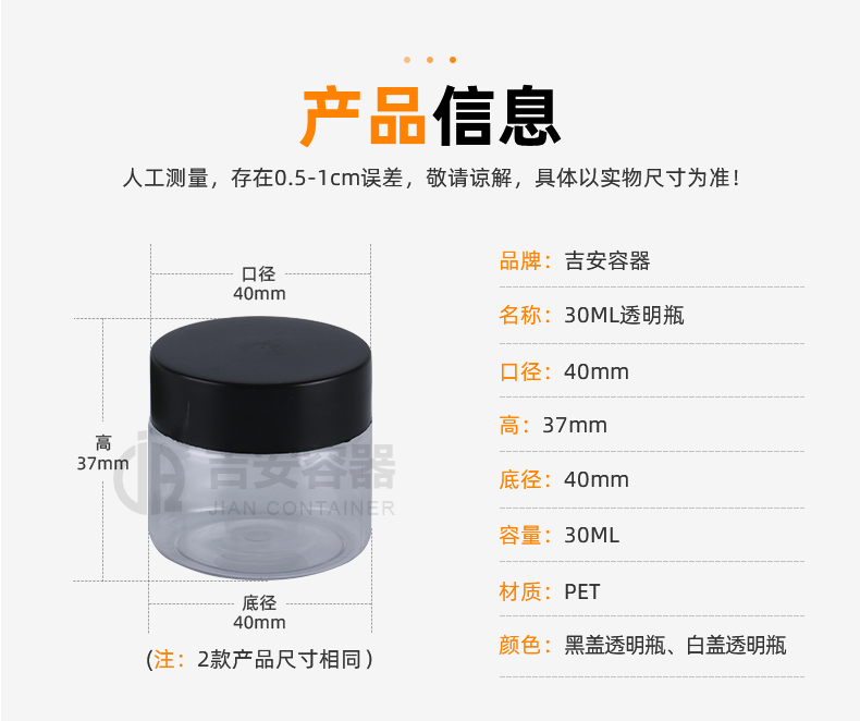 東莞市吉安包裝容器有限公司創立于2000年8月1日,是中國知名品牌企業。已通過ISO 9001質量管理體系資質認證,加入了中國中空協會,并獲得《中國知名品牌》,《國家標準合格產品》,《全國重合同守信用AAA級企業》,《質量.服務.誠信AAA企業》等榮譽稱號。根據材質的不同,我們的產品分為塑料容器、鐵質容器、鋁材容器、玻璃容器、紙質容器等五大類。按產品的名稱分為塑料桶、塑料瓶、包裝桶、涂料桶、機油桶、油脂桶、化工罐、膠水瓶、鐵桶、鐵罐、鋁瓶、鋁罐、阻隔瓶、高阻隔瓶等,容量從3ML至1000L多種規格,多種款式。適合包裝的產品包括:化學試劑、化工原料、化工助劑、飼料添加劑、油墨、油漆、樹脂農藥、日用化學品、聚氨脂、膠粘劑,廣泛應用于化工、建筑、食品、醫療、生物等各領域。
