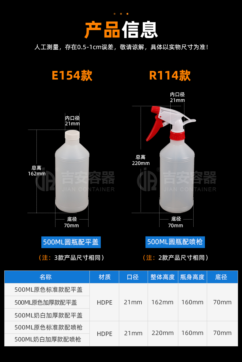 東莞市吉安包裝容器有限公司創立于2000年8月1日,是中國知名品牌企業。已通過ISO 9001質量管理體系資質認證,加入了中國中空協會,并獲得《中國知名品牌》,《國家標準合格產品》,《全國重合同守信用AAA級企業》,《質量.服務.誠信AAA企業》等榮譽稱號。根據材質的不同,我們的產品分為塑料容器、鐵質容器、鋁材容器、玻璃容器、紙質容器等五大類。按產品的名稱分為塑料桶、塑料瓶、包裝桶、涂料桶、機油桶、油脂桶、化工罐、膠水瓶、鐵桶、鐵罐、鋁瓶、鋁罐、阻隔瓶、高阻隔瓶等,容量從3ML至1000L多種規格,多種款式。適合包裝的產品包括:化學試劑、化工原料、化工助劑、飼料添加劑、油墨、油漆、樹脂農藥、日用化學品、聚氨脂、膠粘劑,廣泛應用于化工、建筑、食品、醫療、生物等各領域。