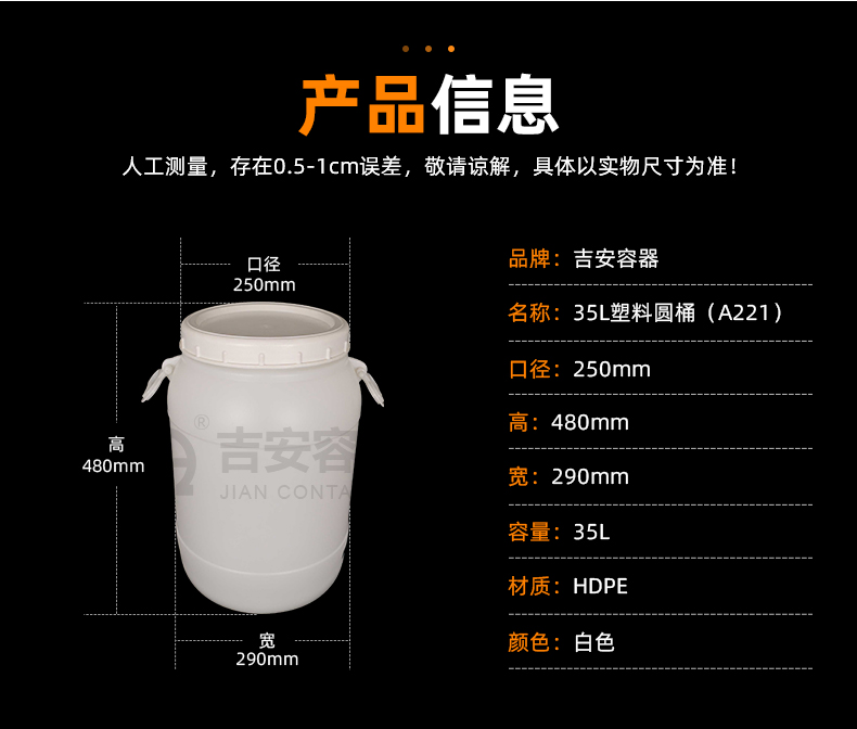 材質(zhì):罐蓋-PP,罐身-HDPE |