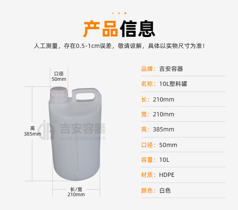小口塑料桶:采用全新聚乙烯原料吹塑工藝制作而成,具有耐腐蝕,耐酸堿特性,小口設計密封性能強,廣泛應用于化工、清潔、食品、添加劑、汽車等各行業液體包裝。