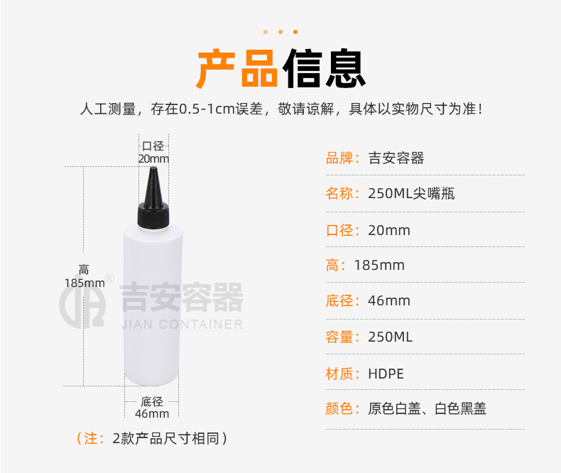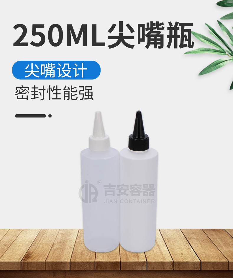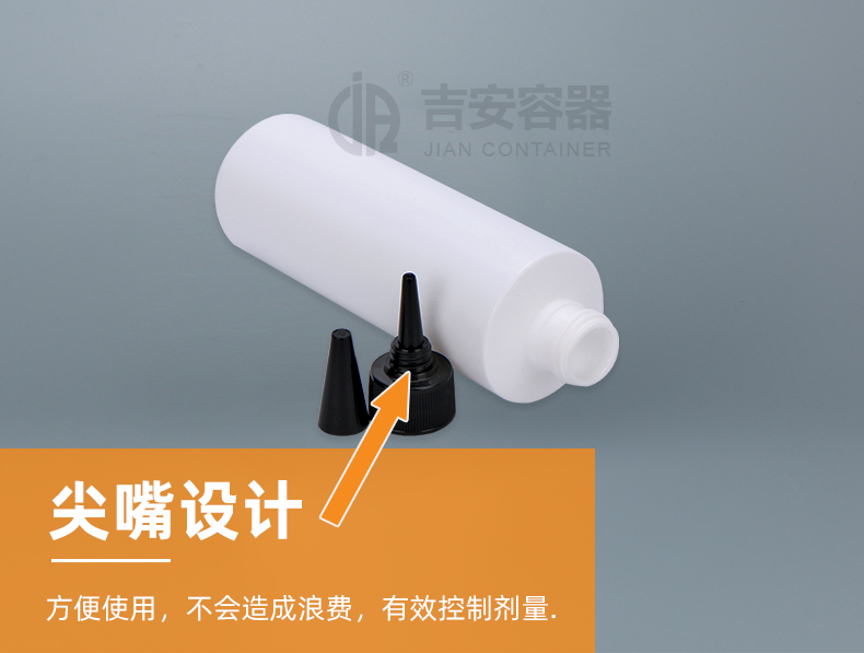 尖嘴瓶適用行業廣泛,多用于膠水包裝、眼藥水包裝、食品調料包裝,因其尖嘴特點,具備方便滴膠,操作時流量可控可調,使用方便。