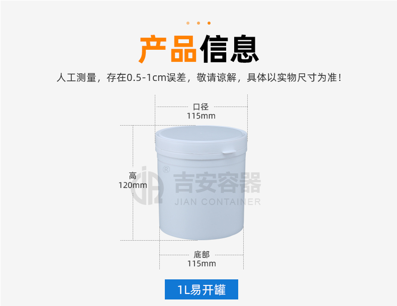 東莞市吉安包裝容器有限公司創立于2000年8月1日,是中國知名品牌企業。已通過ISO 9001質量管理體系資質認證,加入了中國中空協會,并獲得《中國知名品牌》,《國家標準合格產品》,《全國重合同守信用AAA級企業》,《質量.服務.誠信AAA企業》等榮譽稱號。根據材質的不同,我們的產品分為塑料容器、鐵質容器、鋁材容器、玻璃容器、紙質容器等五大類。按產品的名稱分為塑料桶、塑料瓶、包裝桶、涂料桶、機油桶、油脂桶、化工罐、膠水瓶、鐵桶、鐵罐、鋁瓶、鋁罐、阻隔瓶、高阻隔瓶等,容量從3ML至1000L多種規格,多種款式。適合包裝的產品包括:化學試劑、化工原料、化工助劑、飼料添加劑、油墨、油漆、樹脂農藥、日用化學品、聚氨脂、膠粘劑,廣泛應用于化工、建筑、食品、醫療、生物等各領域。